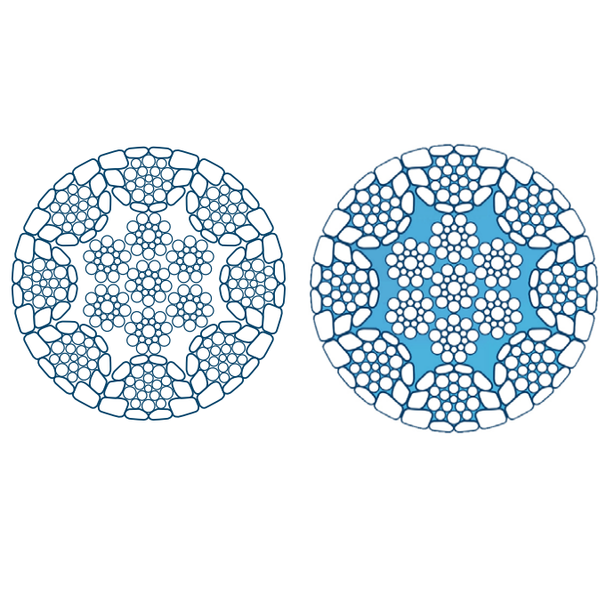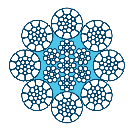 Dyform® 8 is a high performance compacted single layer constructed rope with 8 outer strands. Plastic Impregnation (PI) reduces bend fatigue and improves core service life with plastic injection.